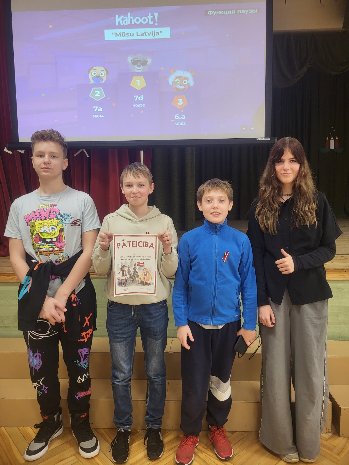12.novembrī notika Kahoot spēle pamatskolas skolēniem. Spēles mērķis bija stiprināt izglītojamo patriotismu un valstiskas identitātes apziņu, veidot zināšanas par nozīmīgāko Latvijā, akcentēt izglītojamo valodas kompetences.